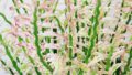 - 葉と茎には黄色の斑が入り、また葉には桃色が入ります。